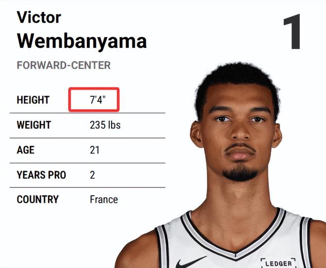 文班亚马要么是在24小时内“缩水”了2厘米——这从很多角度看都让人担忧;要么就是他的身高数据被反复修改,可能因为他不想被外界认为身高超过2米24。